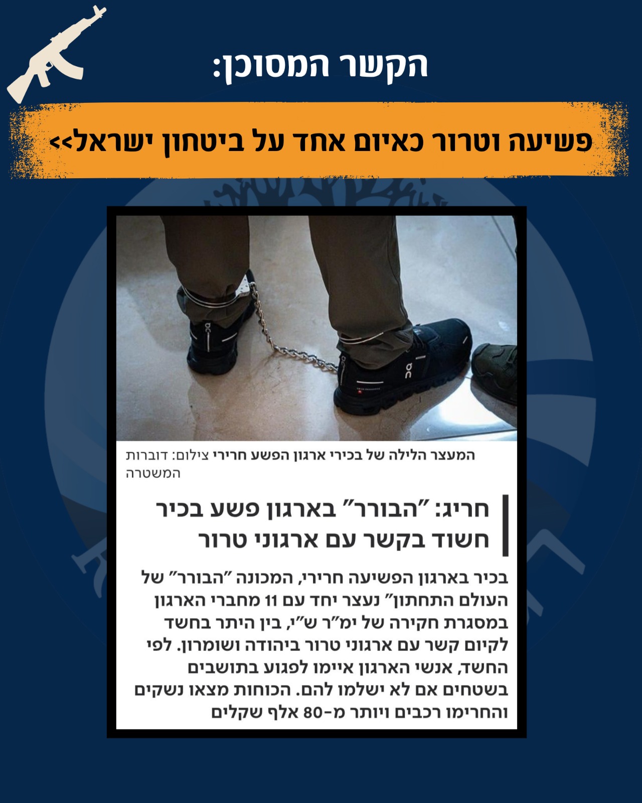 הקשר ההדוק שנחשף בין ארגוני הפשיעה במדינת ישראל לארגוני הטרור ביהודה ושומרון הוא הוכחה נוספת לכך שוואקום של משילות מזמין גם כאוס ביטחוני.
